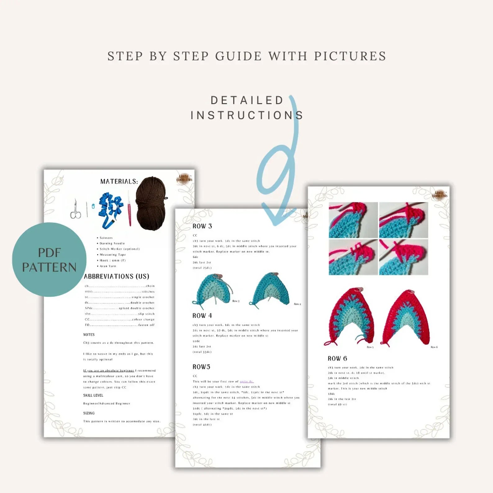 - Detailed digital pattern with, step-by-step instructions and pictures